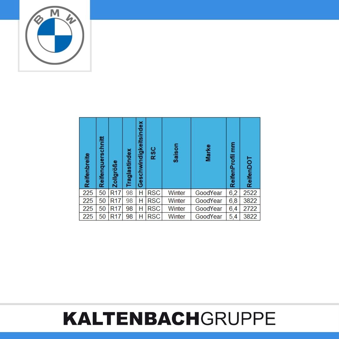 – Reifen: 225/50 R17 97H Goodyear Ultra Grip Performance GEN-1 RSC