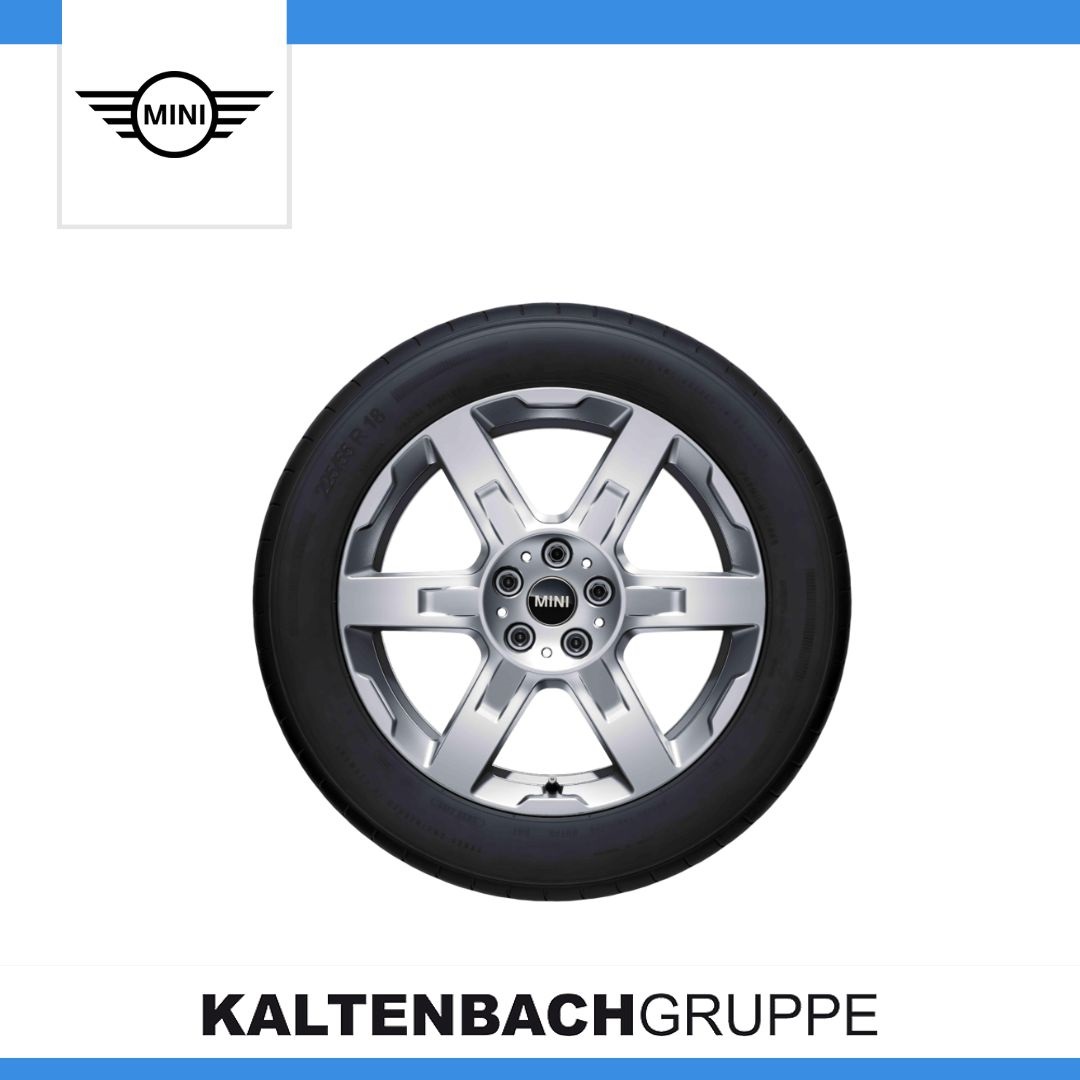 Das hochwertige 18'' MINI Asteroid Speiche 944 in Refined Silver verleiht dem Fahrzeug mit seiner markanten Optik eine besonders sportliche Note. Schneekettentaugliches RDC-Winter-Komplettrad, mit Reifengröße 225/55R18 102H XL sondern erfüllen dabei gleichzeitig höchste Qualitätsanforderungen. Neben optimaler Langlebigkeit überzeugen sie vor allem durch absolute Rundlaufgenauigkeit. Um diese außerordentliche Qualität langfristig gewährleisten zu können, werden die Räder gemäß den hohen BMW Absicherungsstandards umfangreichen Prüf- und Testverfahren unterzogen.